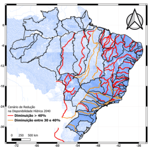 Segundo a publicação, a disponibilidade hídrica pode cair mais de 40% em regiões hidrográficas do Norte, Nordeste, Centro-Oeste e parte do Sudeste até 2040. Com essa redução, existe uma tendência de aumento do número de trechos de rios intermitentes (que secam temporariamente) especialmente na região Nordeste. Essas situações demandam preparação e podem afetar a geração hidrelétrica, a agricultura e o abastecimento de água nas cidades dessas regiões. Por outro lado, o Sul possui uma tendência de aumento da disponibilidade hídrica em até 5% até 2040, mas com uma maior imprevisibilidade e um aumento da frequência de cheias e inundações, como vem ocorrendo na região nos últimos anos.