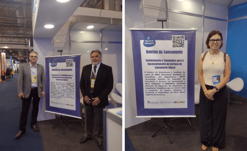 A feira acontece nos pavilhões verde e vermelho do Expo Center Norte e no dia da abertura marcaram presença por lá Ricardo Lazzari Mendes, presidente da Apecs/Boletim do Saneamento, Fernando Jardim Mentone, presidente do Sinaenco-SP/Boletim do Saneamento, e Bernardete Sender, diretora de meio ambiente da Apecs/Boletim do Saneamento.
