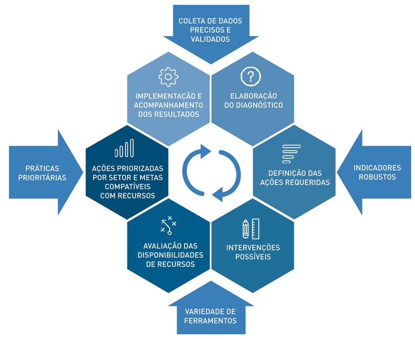 Com o objetivo de orientar gestores de sistemas de abastecimento de água, apresenta-se a seguir as etapas de trabalho para a redução de perdas.