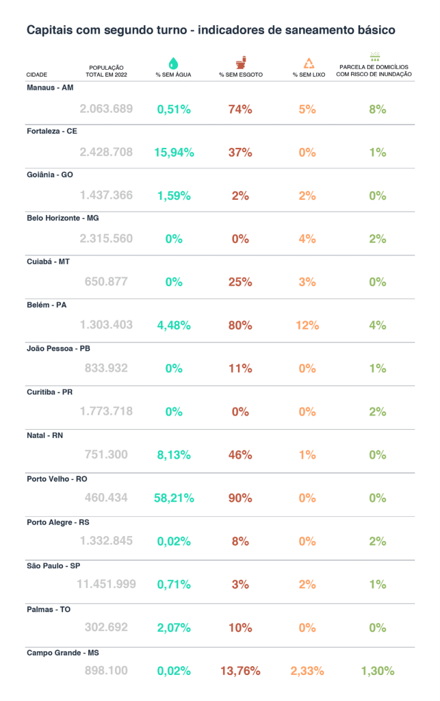 Desde o primeiro turno, o IAS defende que as pautas relacionadas à água e saneamento, incluindo as questões relacionadas às mudanças climáticas, tenham prioridade nas campanhas e debates, uma demanda tornada mais urgente diante dos dramáticos eventos de 2024, como a estiagem na Amazônia e as enchentes no Rio Grande do Sul.